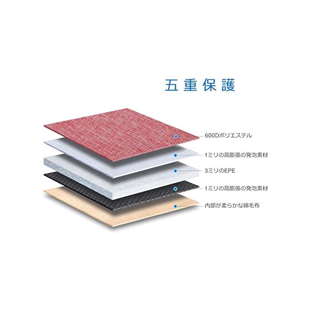 軽量で保護力、撥水性に優れた丈夫なポリエステル素材を使用して、傷や衝撃から保護しながら持ち運びやすいです。