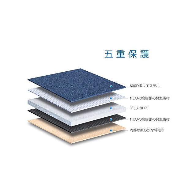 軽量で保護力、撥水性に優れた丈夫なポリエステル素材を使用して、傷や衝撃から保護しながら持ち運びやすいです。