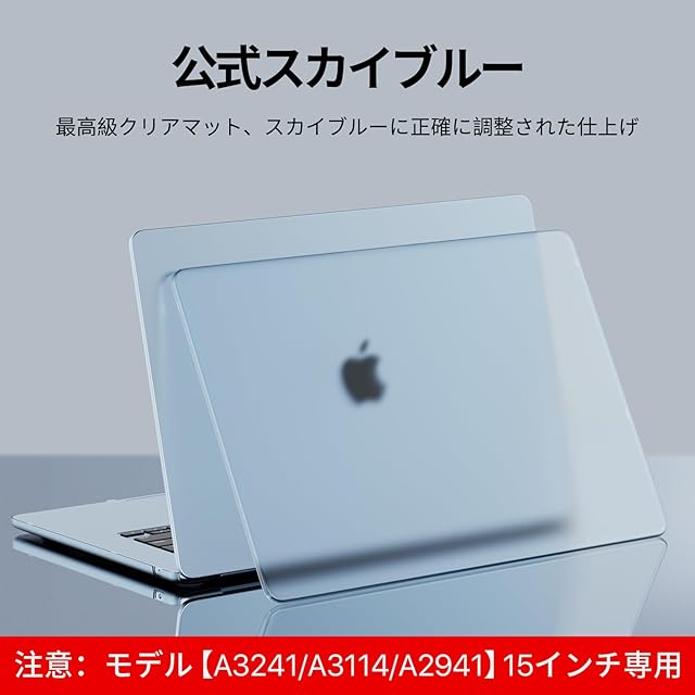商品名:Soonjet インビジブルアーマー 対応 MacBook Air 15インチケース 2025-2023 M4/M3/M2 [裸のデバイスと同一] [Scientific Slim] 頑丈なハードシェル半透明カバー ノートパソコン用 モデルA3241/A3114/A2941 - スカイブルー