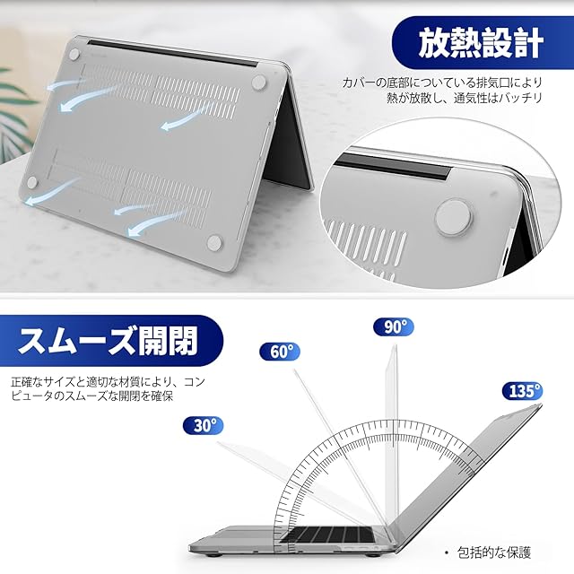 【極薄・高精細透明】優れた素材を採用し、抗酸化作用があり、透明度が長く持続し、長期間使用しても黄変しません。軽量設計を採用しており、持ち運びが簡単です。全透明カラーは光の透過率が非常に高く、Macbook Airの美しさを最大限に再現します。
