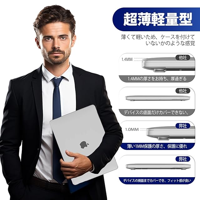【精密な仕上がり】シェルはMac本体を切削して形成され、本体にフィットします。保護カバーを取り付けた場合でも、USB充電ポートなどの通常の使用には影響しません。トップカバーとボトムカバーは独立したデザインを採用しており、何度引き上げてもMacBook本体に影響を与えません。