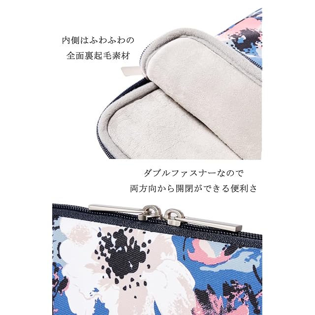 「内側はふわふわの全面裏起毛素材」内側は全面にクッション性に優れたベルベット生地を使用し、柔らかいふわふわの手触りで大切なpcを衝撃から守ります。
