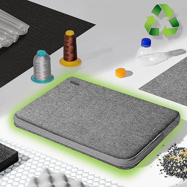 再生防水生地: PETペットボトルを使用した高品質の撥水再生生地を使用したラップトップケースバッグで、破れや耐水性に優れ、水やモートを効果的に防ぎます。 雨がはねたり、飲み物がこぼれたりする心配はありません。 ラップトップを保護しながら、環境にも配慮しています