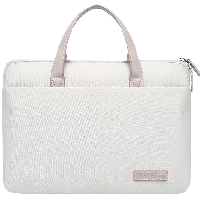 TREXPURE ノートパソコンケース PCバッグ 無地 手提げ 肩掛け シンプル 13.3/14/15.6/16.1インチ 撥水 軽量 耐衝撃 macbook適用 (15.6-16.1インチのPC(外寸:42.5cm*30cm*7cm), ホワイト)