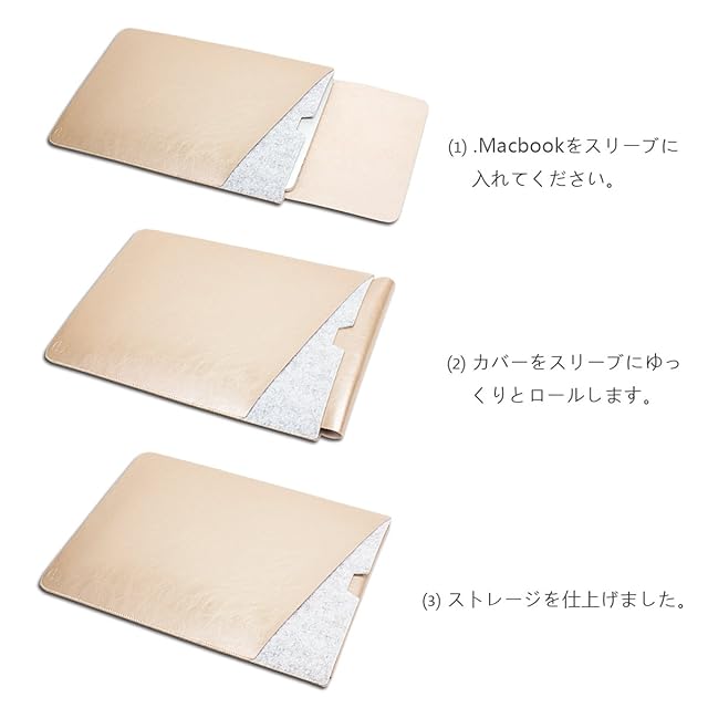 0.4cmの厚さで、厚くもない薄くもない質感で、MacBookを保護ながら、持ち歩くのも心地よい。