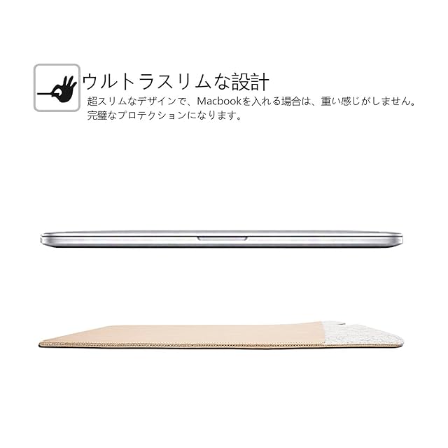 弾性のある柔らかいレザー製品で、摩擦や衝撃からMacBookを優しくしっかりと包んで守ってくれます。