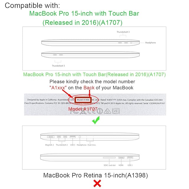 適応モデル:Macbook Pro 15インチ(Touch Bar搭載2016/2017モデル)とMacBook Pro Retina 15 インチ: 2016/2017, Mid 2015, Mid 2014, Late 2013, Early 2013, 2012モデルに専用設計のカバーです。他の機種の場合は、上記のモデルとサイズを比較してください