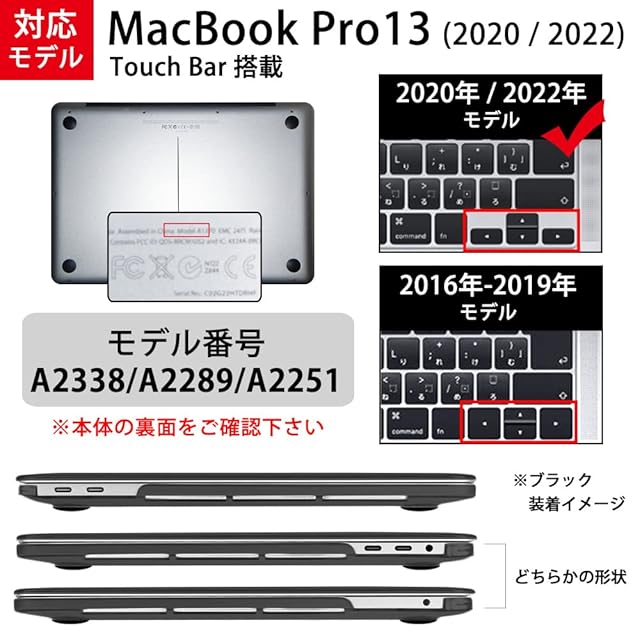 <MacBookケース 対応モデル> ◆ MacBook Pro 13インチ M2チップ Touch Bar 搭載 2022年モデル / ◆ MacBook Pro 13インチ M1チップ Touch Bar 搭載 2020年モデル / ◆ MacBook Pro 13インチ Touch Bar 搭載 2020年 モデル ( モデル番号: A2338 A2251 A2289 ) 対応