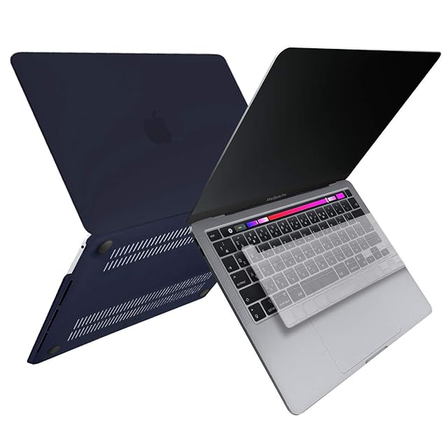 MS factory MacBook Pro 13インチ M2 2022 M1 2020 用 ケース カバー + 日本語 キーボードカバー マックブックプロ 13 ハードケース タッチバー 搭載 Pro13 A2338 A2251 A2289 全16色 マット加工 ネイビー 紺 RMC series RMC-SETP13T-20-MNV