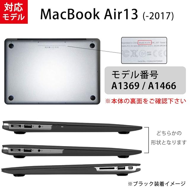 <MacBookケース 対応モデル> MacBook Air13インチ ( 2013年モデル 2014年モデル 2015年モデル 2017年モデル ) に完全対応モデルです。側面のデュアルマイクに干渉しません。※2018年以降モデルには対応しません