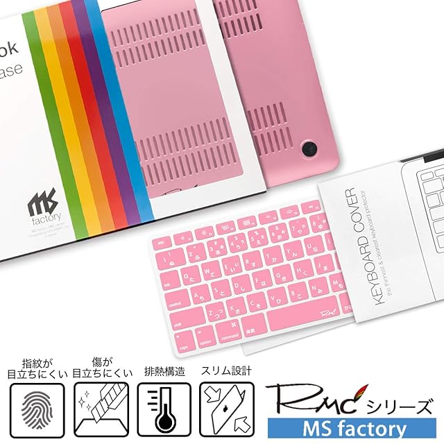 MS factory MacBook Air 13 2010 〜 2017 用 ケース カバー + 日本語 キーボードカバー マックブック エアー 13インチ ハードケース Air13 A1466 A1369 全12色 マット加工 ピンク RMC series RMC-SETA13MPK