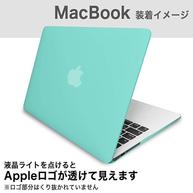 <特徴>Appleロゴまで完全カバーし、MacBookを傷から守り、キーボードをほこりや汚れから保護します。※Appleロゴ部分はくり抜かれていません ※ミントブルーのケースでは、背面のAppleロゴマークは液晶ライトと連動している為、液晶ライトが暗いと見えづらくなりますが、明るくして頂くと画像のようにロゴが浮かび上がります。MacBookを閉じている状態ではロゴは見えません。