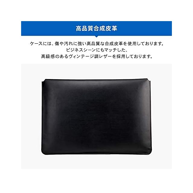 【高品質合成皮革】… ケースには、傷や汚れに強い高品質な合成皮革を使用しております。ビジネスシーンにもマッチした、高級感のあるヴィンテージ調レザーを採用しております。