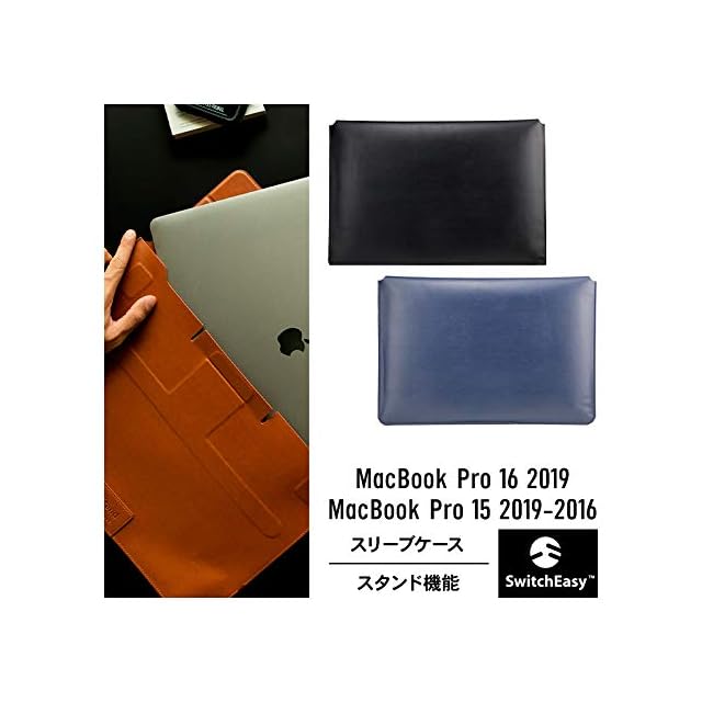 【SwitchEasy】 MacBook Pro 16 / MacBookPro 15 / MacBook Air 15 対応 レザー ケース スタンド 機能 付き ソフト 革 マグネット カバー 持ち運び 収納 革ケース [ MacBookPro マックブックプロ 16インチ / 15インチ MacBook Air マックブックエアー 15インチ 対応 ] EasyStand ミッドナイトブルー