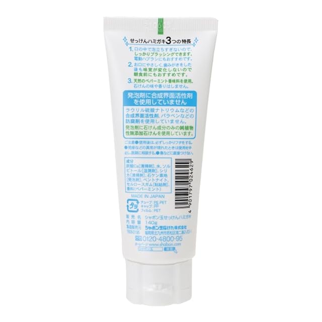 シャボン玉 せっけんハミガキ 140g 天然由来香料 合成界面活性剤不使用