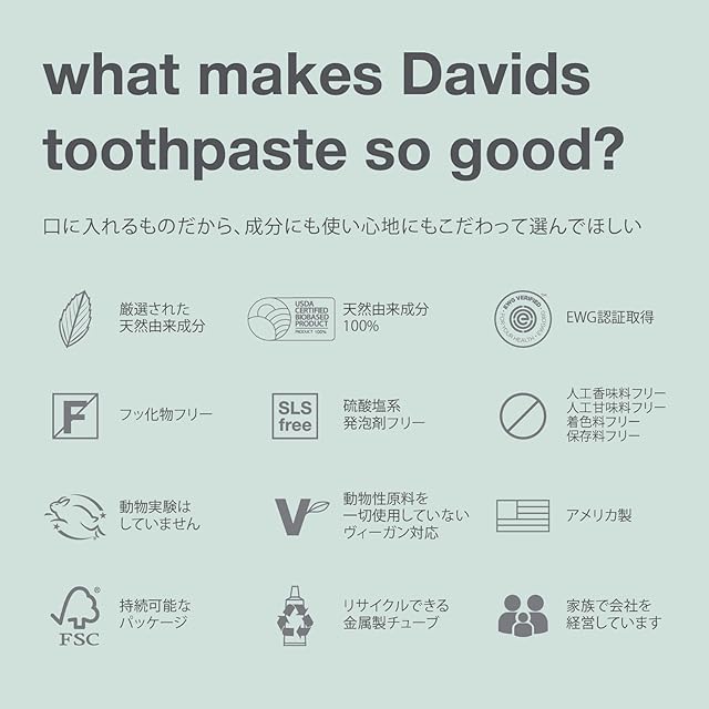 フッ化物(フッ素)や硫酸塩系発泡剤をはじめとする人工原料をすべて取り除き、天然成分のみでつくられた歯みがき粉。