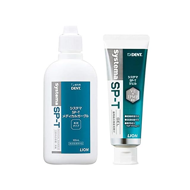 ライオン システマSP-T メディカルガーグル 100ml <br> <br> 口腔内及びのどの洗浄 <br> 【用法・用量】 <br> 1日数回、水 約100mlに本品約0.5ml(6~10滴)を滴下し、よくかき混ぜた後うがいをしてください。 <br> <br> ライオン システマ SP-T ジェル 85g <br> <br> 【フレーバー】 <br> ハーブミント <br> <br> 【保管及び取扱い上の注意】 <br> ●直射日光の当たらない場所に保管してください。 <br> ●小児の手の届かない場所に保管してください。 <br> ●他の容器に入れ替えない、また他の製品を本容器に入れ替えないでください。 <br> ●使用期限を過ぎた製品は使用しないでください。 <br> <br>