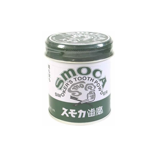 タバコのヤニや着色が気になる方などにオススメの歯磨き粉(パウダー)です。レトロなデザインで緑色の缶入りです。葉緑素を追加配合タイプ。