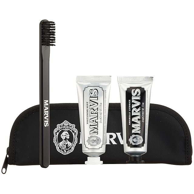 MARVIS(マービス) トラベル・セット Double Flavors 歯磨き粉・歯ブラシ・ポーチ 携帯用 オーラルケア ギフト セット イタリア製 ホワイト・ミント/リコラス・ミント