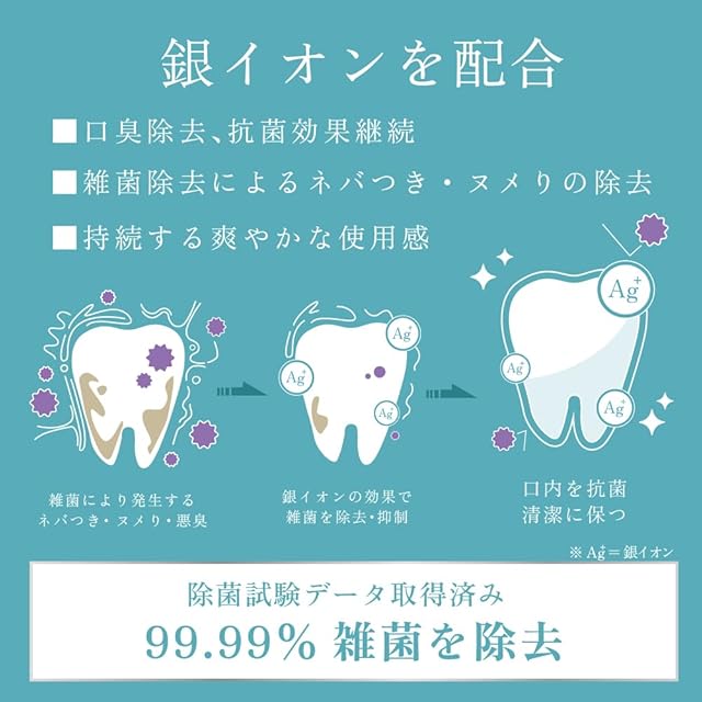 【99.99%除菌】銀イオンの除菌効果で口内トラブルの原因である菌を99.99%除去。