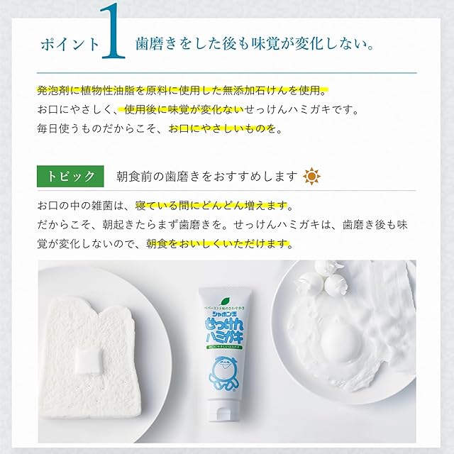 無添加石けんをベースにした石けんハミガキ。安心です。
