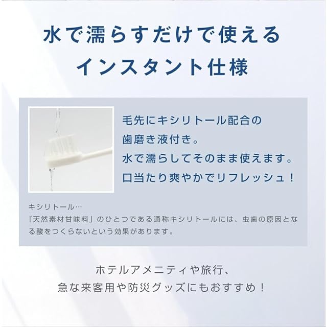 【200個】日本製 使い捨て ハブラシ ハミガキ(キシリトール)付/キシリトール配合 業務用 インスタントハブラシ 個包装 歯磨き粉付着タイプ PBT毛 ホテルアメニティ PBT-08 バイオマスパッケージ (200個入り)