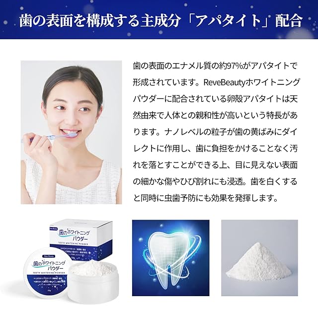 商品名:Reve Beauty 大容量 50g ホワイトニングパウダー 歯磨き粉 歯を白く ハミガキ 口臭ケア 天然 はみがき粉 歯石 オーラルケア 卵殻アパタイト 重曹 着色汚れオフ