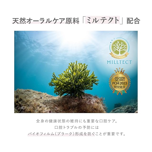✅【カオリン(清掃成分)配合】自然由来の「カオリン」を使用し、口内と清潔に保ちながら自然な白さへと導きます。効果的ながらも口内環境にやさしい成分です。