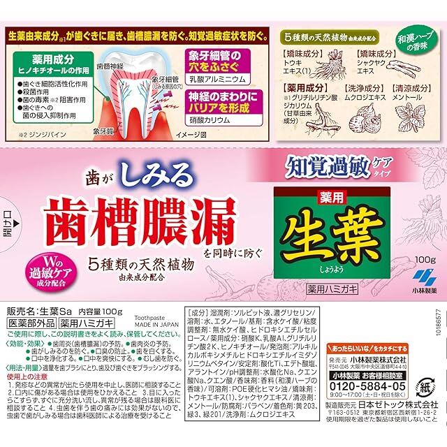 生葉(しょうよう) 知覚過敏症状予防タイプ 100グラム (x 2)