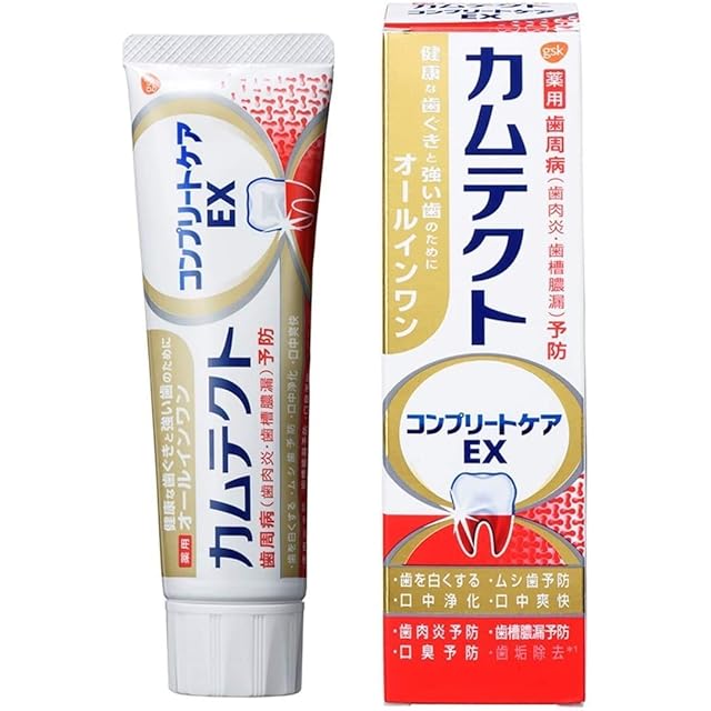 ◆歯周病(歯肉炎・歯槽膿漏)予防<br> ◆歯を白くする・ムシ歯予防・口中浄化・口中爽快・歯肉炎予防・歯槽膿漏予防・口臭予防・歯垢除去<br> ◆コンプリートケアEXは、歯ぐきからの出血が気になる方のために特別に開発。健康な歯ぐきと強い歯のためのオールインワンハミガキです。<br> ◆独自の歯ぐきEFP処方の濃密ハミガキは、ホワイトエクストラファインパウダー*を約70%配合。バクテリアの巣である歯垢をブラッシングで取り除きます。<br> *炭酸水素ナトリウム・含水ケイ酸(清掃剤)<br> ◆フッ素配合。<br> <br> <使用方法><br> 適量をハブラシにとり、ていねいに歯と歯ぐきをブラッシングし、飲み込まずに口をすすいでください。<br> 歯周病を防ぐため、毎日2~3回ハミガキすることをおすすめします。