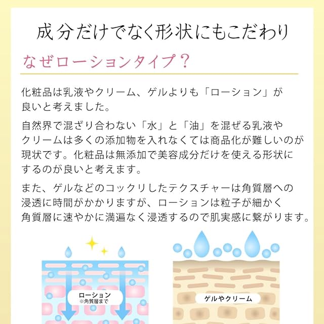 【オールインワンは断然ローション】オールインワン商品にはクリームやゲルなどのリッチなテクスチャーが多いですが、Toccoは粒子の細かいローション(ミスト)に注目。そうすることで、美容成分が角質層の隅々まで満遍なく行き渡り、肌実感に繋がります。