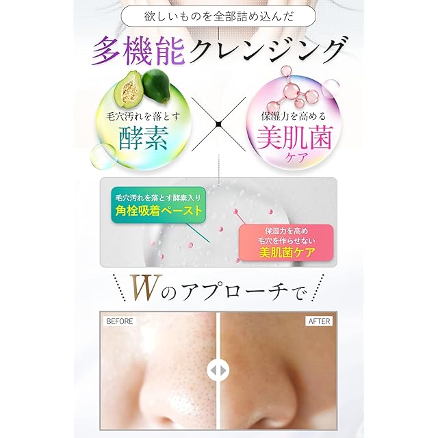 ✅【酵素が毛穴汚れを分解】これまでの洗顔法では落としきれなかった毛穴の汚れが、皮脂や古い角質と結びついて頑固な毛穴の詰まりになってしまいます。そんな頑固汚れには、汚れの元である皮脂やタンパク質を分解してくれる酵素が最適!このクレンジングを使って、これまでの洗顔法では落としきれなかった毛穴の汚れを落として、毛穴レス美肌になりませんか?
