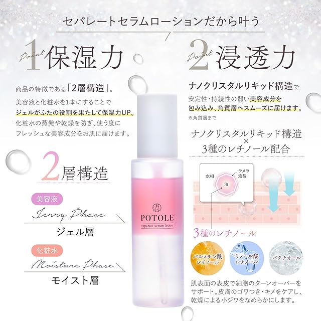 商品名:POTOLE 美容化粧水 92ml 3本セット ビタミンC レチノール美容液 乾燥 保湿 角質 ポトレ セパレートセラムローション