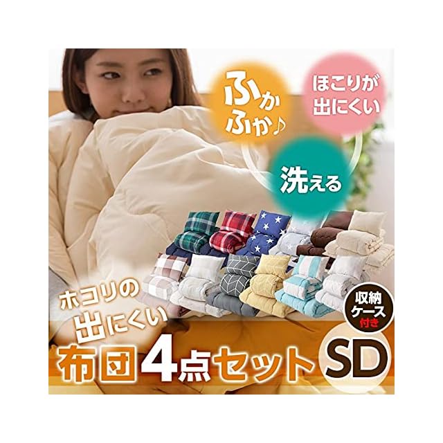 届いた日から使える布団セット ほこりの出にくい 寝具 4点セット (SD) セミダブル 【 掛布団 (1) 敷布団(1) 枕 (1) 収納袋 (1) 】