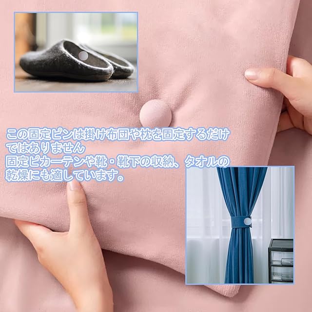 【多様な用途】 寝具の固定だけでなく、カーテンの固定やタオルや靴下の収納など、さまざまな用途にご使用いただけます。便利で多機能なアイテムです。