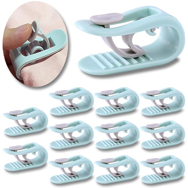 QTOETUII 布団 クリップ 布団 ズレ防止 無針アンチシフト 布団を傷めません 軽量でコンパクト 取り付けが簡単です 布団固定用 クリップ すべての季節 12個入り (青)