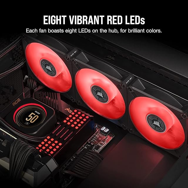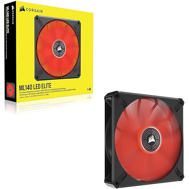 CORSAIR ML140 LED ELITE、AirGuide 付き 140mm 磁気浮上式 レッド LED ファン、増設用シングルパック CO-9050123-WW