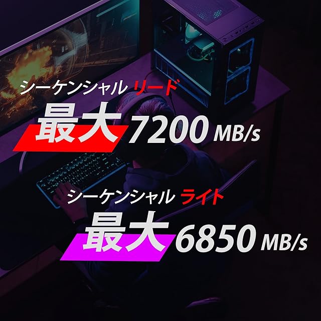 フル装備:NVMe (PCIe Gen4x4) 高速テクノロジーとヒートシンク、最大7200/6850MB/秒の読み取り/書き込み速度。
