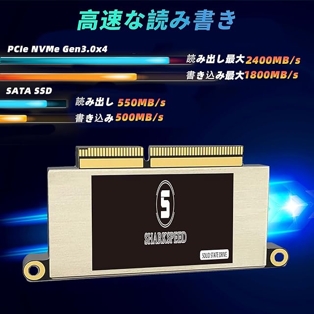 【5年】S SHARKSPEEDのSSDは業界トップクラスの信頼性を誇り、徹底的な品質検査と信頼性テストを経て、優れた品質と性能を持ち、5年間のと無料の技術サポートを提供しています。何かご問題がございましたら、取扱説明書をダウンロードしてください、いつでもお気軽にお問い合わせください。パッケージ内容:MacBook専用A1708 SSD*1、ドライバー*2、取り付けガイド*1。