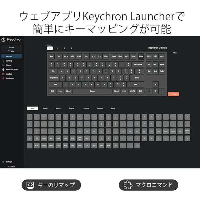 国内正規品 Keychron Q3 Max QMK/VIAワイヤレス・カスタムメカニカルキーボード、2.4 GHz/Bluetooth 5.1/有線接続、JISレイアウト、RGBライト、ホットスワップ対応Gateron Jupiterメカニカルスイッチ/フルアルミニウム/Mac Windows対応 (カーボンブラック, Gateron Jupiterメカニカル赤軸(ホットスワップ))