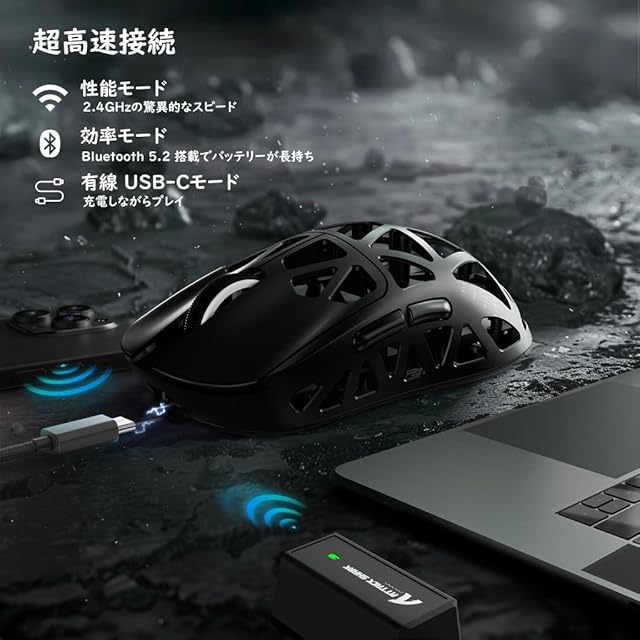 【8000hzポーリングレート】ATTACK SHARK R2超軽量マウスはワイヤレス2.4GHz/Bluetooth/USB-C有線の3種類の接続モードをサポートし、プラグアンドプレイ無線と安定したUSB-C有線接続があり、より広範な無線/有線使用シーンを提供する。R3 マグネシウム合金マウスは、8K Hyperspeed Wireless技術を搭載しています。8Kが独自に開発したワイヤレステクノロジーは、低遅延でより速い伝送速度を提供します。