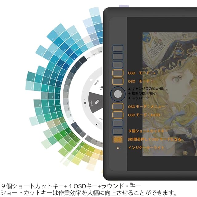 GAOMON 液タブ 15.6インチ スクロールや拡大縮小などに便利なホイール付き フルラミネーション加工 液晶タブレット 9個ショートカットキー 充電不要ペン 傾き検知 金属製スタンド付き 液晶ペンタブレット PD156 PRO