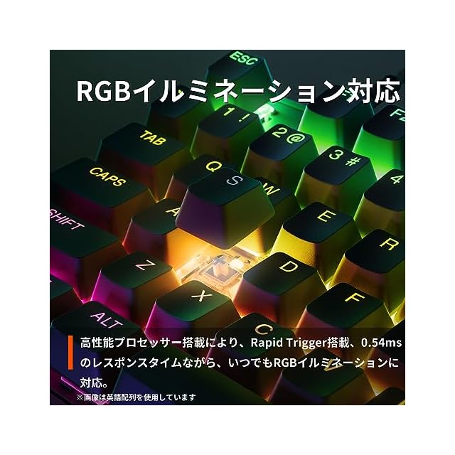【新機能Rapid Tap、人気のRapido Trigger搭載】:キャラクターをより素早くコントロールできる新機能Raid Tapを搭載。また、キーのキャンセルを好みの位置でキー毎に設定可能な人気のRapid Triggerにも対応しています。