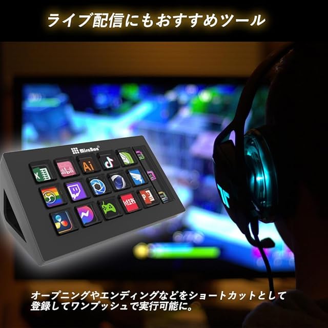 商品名:【最新】 HSV293 Slim ショートカットキー 15個のカスタムキー MiraBox MBox 15キー配列 配信者向けデバイス カスタムキー 左手デバイス ショートカットリモート 片手キーボード Twitch YouTube 連携 Windows 10/macOS 対応 作業効率向上