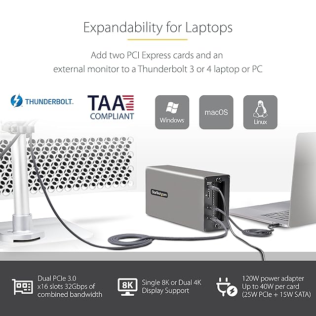 StarTech.com PCIe外付けケース/Thunderbolt 3接続/デュアルPCI Express 3.0 x16スロット/TB3/DP 1.4ポート経由8K/4Kビデオ出力/ノートPC パソコン ビデオキャプチャー FireWire ネットワークカード 増設 拡張 ボックス シャーシ 2TBT3-PCIE-ENCLOSURE