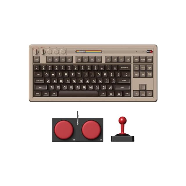 8Bitdo メカニカルキーボード、Bluetooth/2.4 G/USB-Cホットスワップ対応ゲームキーボード、87キー、英語配列、WindowsとAndroidに適したデュアルスーパープログラマブルボタン(C64 Edition)