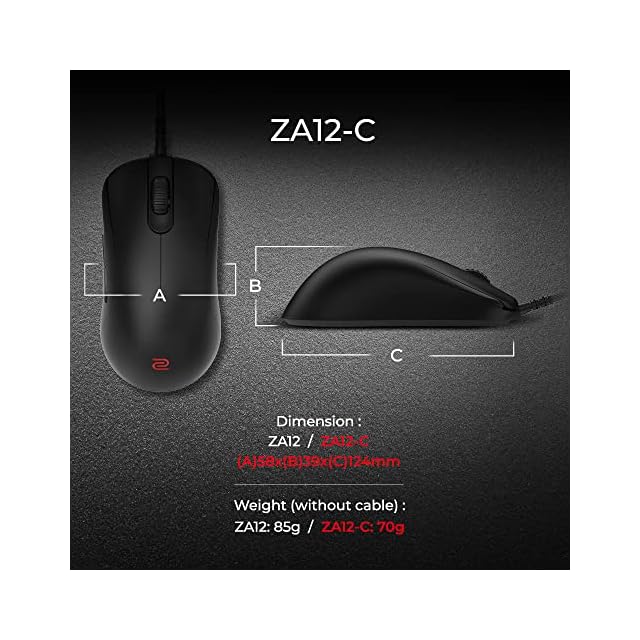 BenQ Zowie ZA12-C 左右対称ゲームマウス eスポーツ用 | 軽量 | パラコードケーブル & 24ステップスクロールホイール より個人的な好みに | ドライバーレス | マットブラックコーティング | Mサイズ