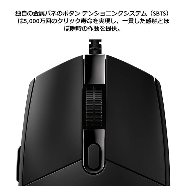 【6個のプログラム可能なボタン】 FPS向けにシンプルの6個ボタンと5個のオンボードメモリー搭載により事前に設定されたプロファイルを瞬時に切り替えられる。