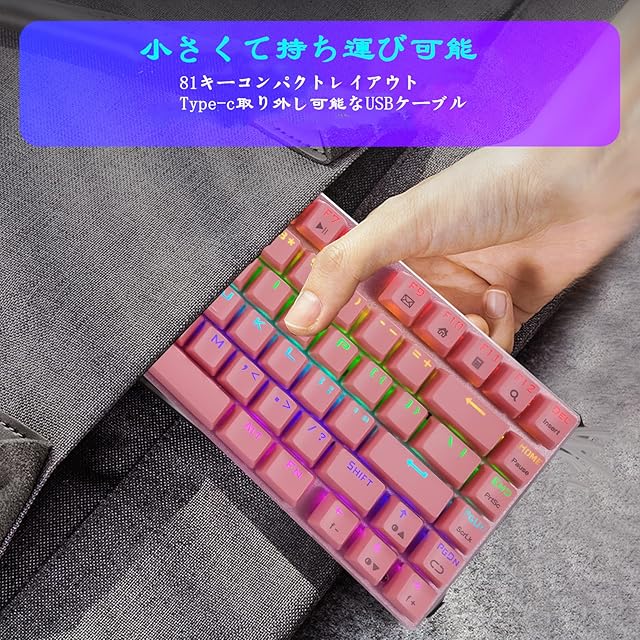 e元素ゲーミングキーボード メカニカル式キーボード 赤軸・青軸・茶軸 アンチゴースト英語配列81キー RGB発光LEDバックライト付き USB有線防水 Windows/Mac OS対応のオフィス&ゲーム用キーボード (茶軸, ピンク)