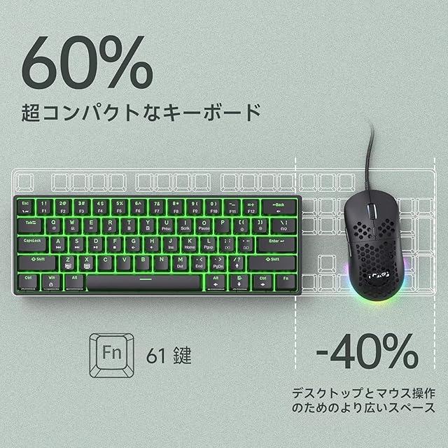 60%コンパクトな機械式キーボード:DK61SEはデスクトップとマウス操作のためのより多くのスペースを解放する超コンパクトなansiレイアウト設計を備えています。